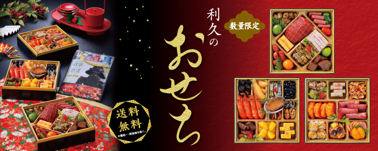 TOP お得なセット商品 利久のおせち 表示切替: 写真のみ 説明付き 1件中1件~1件を表示 商品一覧 利久の和洋中おせち三段重【亀】 ¥23,760(税込) 牛たん専門店利久のおせち料理。壱の重では、ブロックの牛たんスモークやテリーヌなど様々な牛たん料理を、弐の重では有頭海老やアワビの姿煮等の華やかなお正月料理、参の重ではローストビーフや海老チリ等の豪華なお料理が楽しめます。 1件中1件~1件を表示