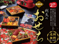 牛たん専門店利久のおせち料理。壱の重では、ブロックの牛たんスモークやテリーヌなど様々な牛たん料理を、弐の重では有頭海老やアワビの姿煮等の華やかなお正月料理、参の重ではローストビーフや海老チリ等の豪華なお料理が楽しめます。